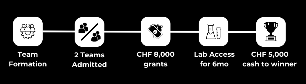 The top 2 teams, each receiving a CHF 8,000 grant, will spend the next six months developing their project in the lab, refining their technology, and building a viable business plan.